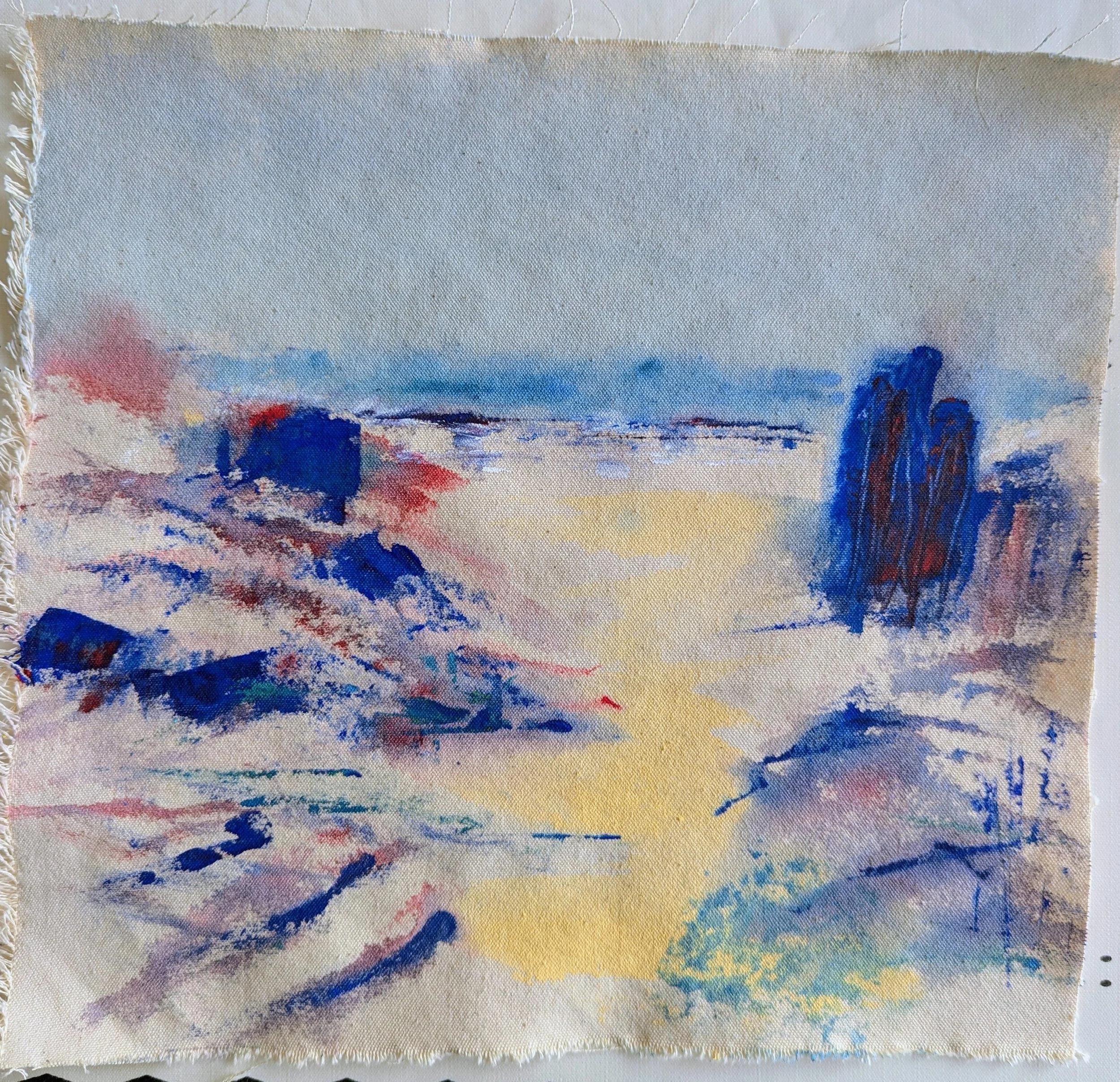 I wanted to experiment so deliberately took unfamiliar materials and a limited palette. It was so interesting to work on raw canvas, a real learning curve.